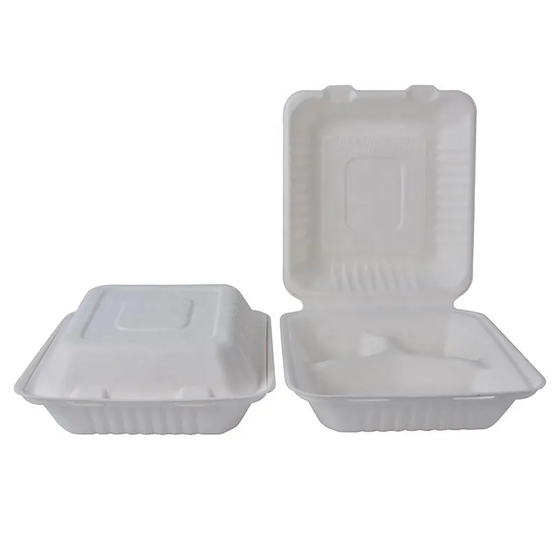 Senang is a professional sugarcane clamshell box manufacturer and supplier. Our sugarcane clamshell boxs are made of biodegradable and eco-friendly sugarcane pulp. The sugarcane clamshell box coating is made of PE, PP, PLA, Aqueous, has excellent leakage resistance. The sugarcane clamshell box is rcyclable, repulpable, biodegradable and compostable. After use, the environmental burden can be reduced through the correct recycling channels. Its material is tough and not easy to break, suitable for daily use by people in a fast-paced life.