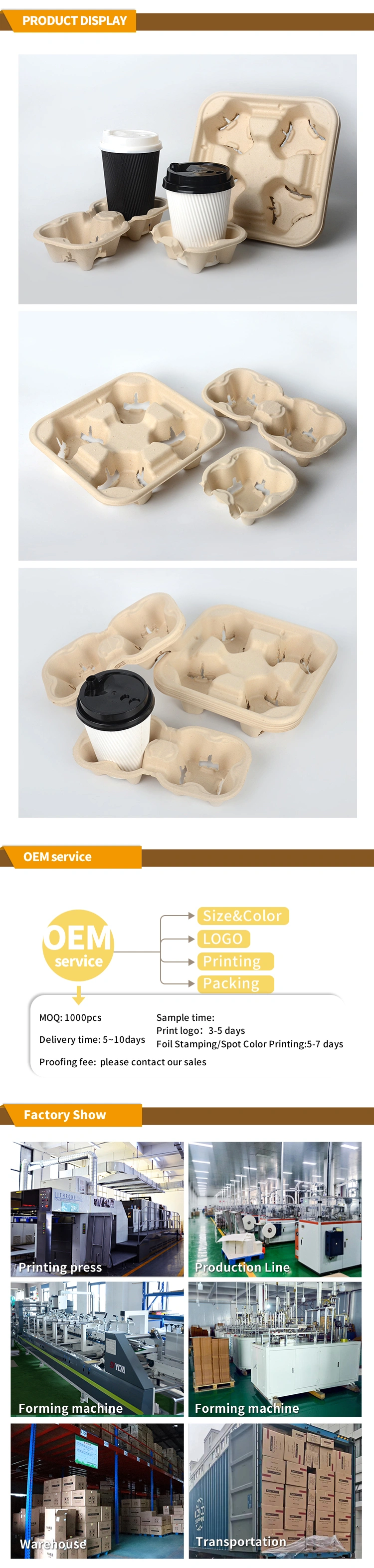 Whether it is family gatherings, dining in the cafeteria or takeaway, etc., our sugarcane cup holders provide a convenient packaging solution. Senang has sugarcane cup holder of various materials and sizes to choose from. We also provide customized printing services, which is an excellent carrier for your brand promotion.