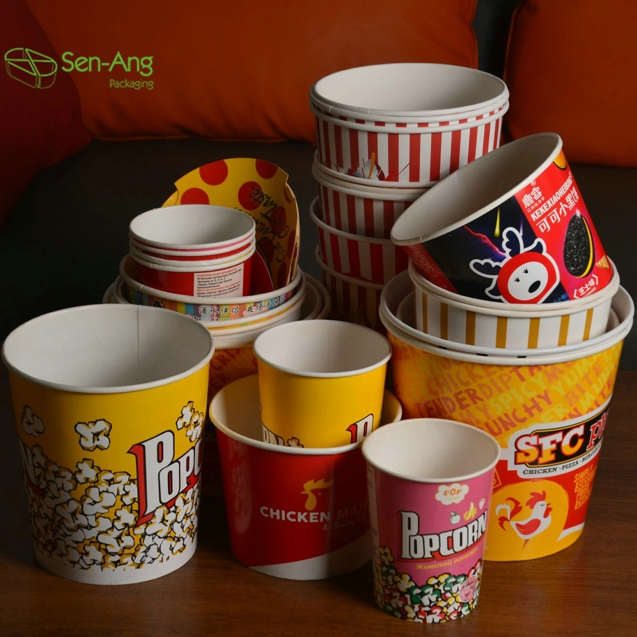 Whether it is family gatherings, dining in the cafeteria or takeaway, etc., our paper buckets provide a convenient packaging solution. SenAng has popcorn bucket of various materials and sizes to choose from. We also provide customized printing services, which is an excellent carrier for your brand promotion.