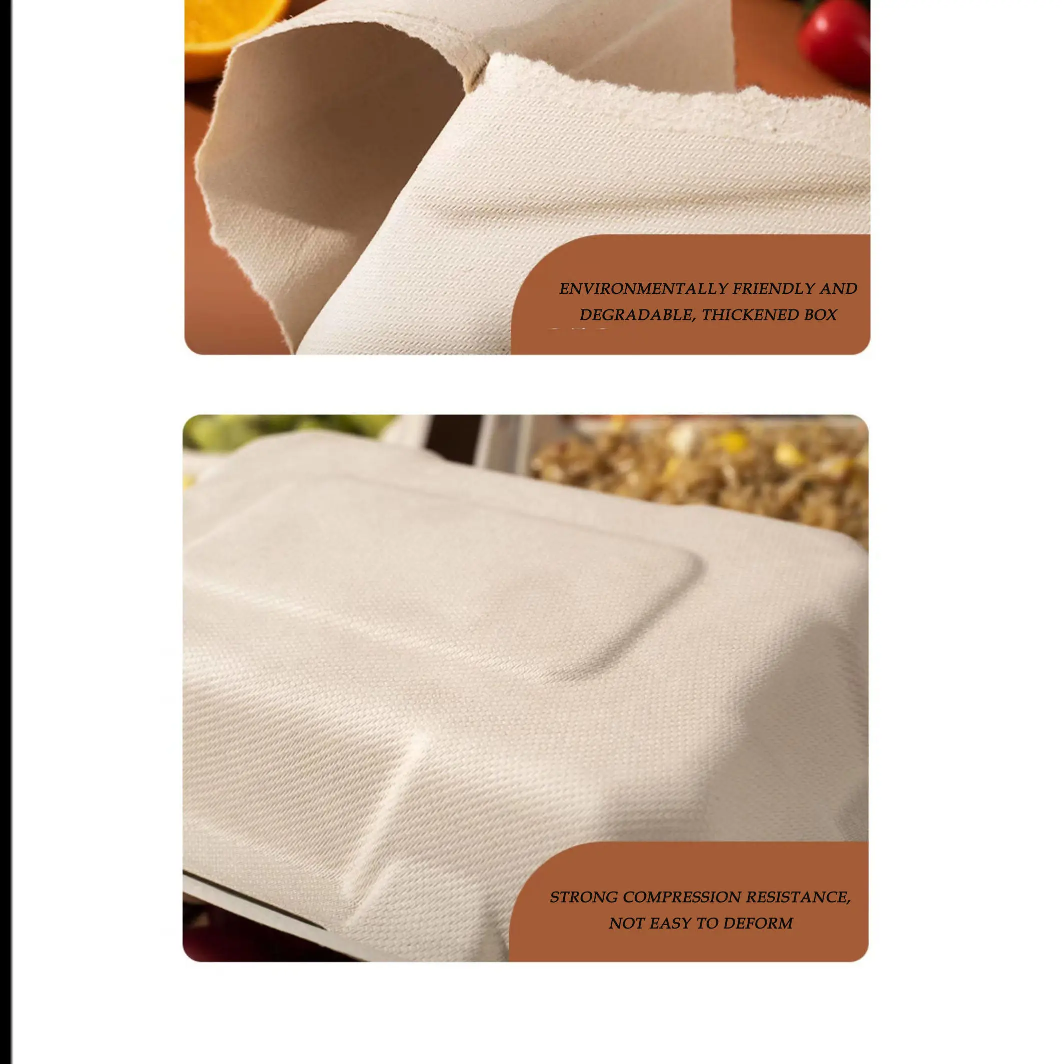 Senang is a professional sugarcane clamshell box manufacturer and supplier. Our sugarcane clamshell boxs are made of biodegradable and eco-friendly sugarcane pulp. The sugarcane clamshell box coating is made of PE, PP, PLA, Aqueous, has excellent leakage resistance. The sugarcane clamshell box is rcyclable, repulpable, biodegradable and compostable. After use, the environmental burden can be reduced through the correct recycling channels. Its material is tough and not easy to break, suitable for daily use by people in a fast-paced life.