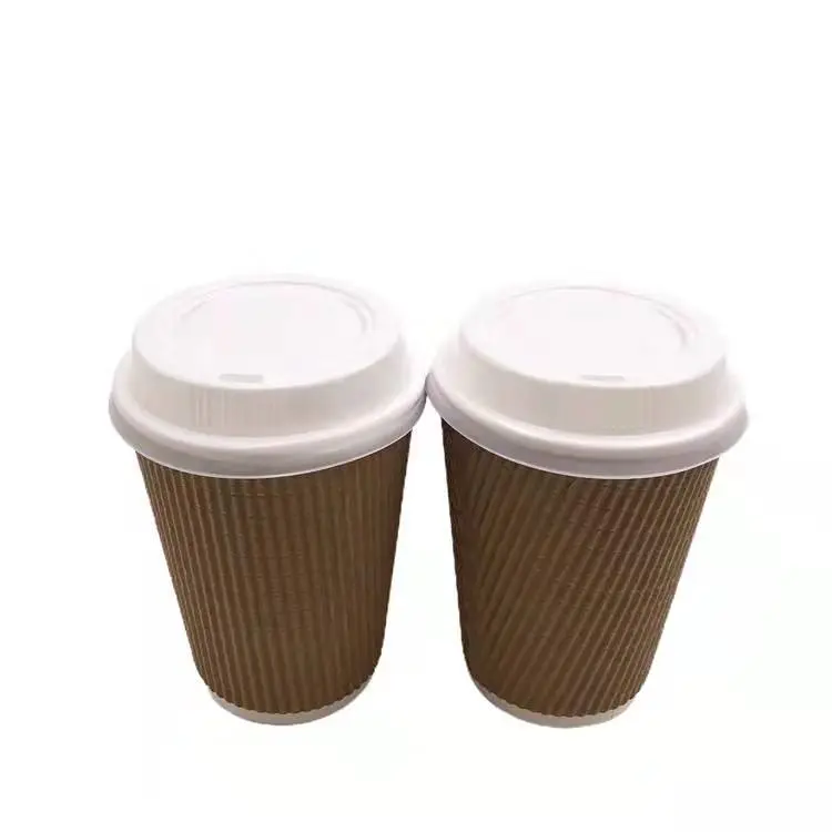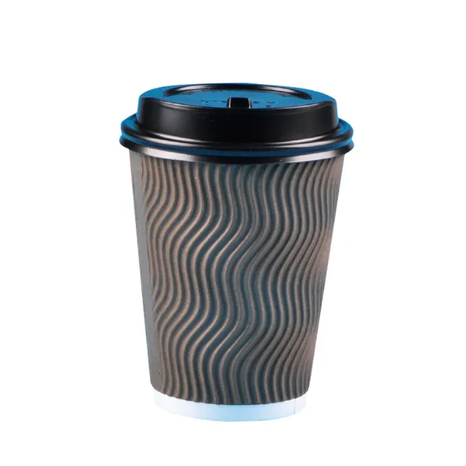 Custom Disposable Double Wall Ripple Wall Paper Cup with Lid