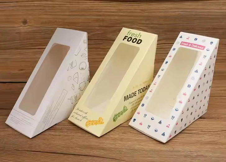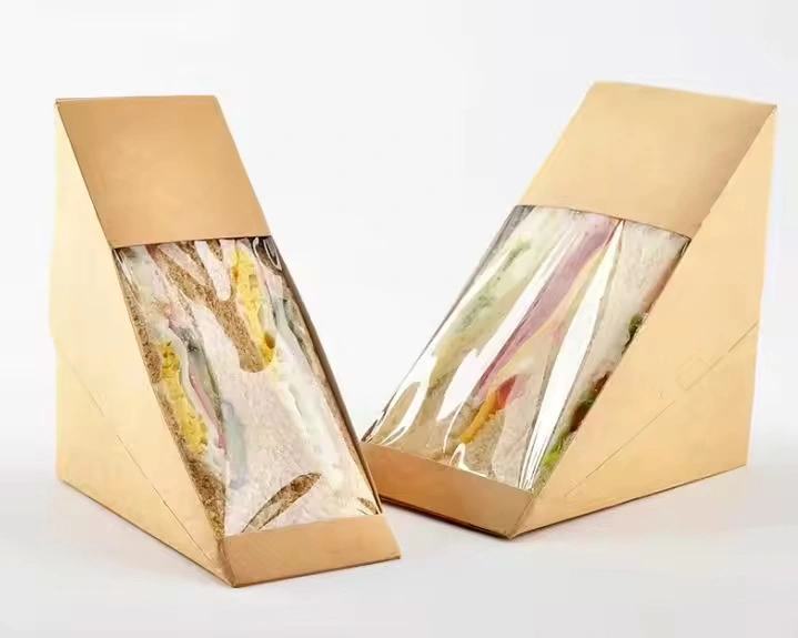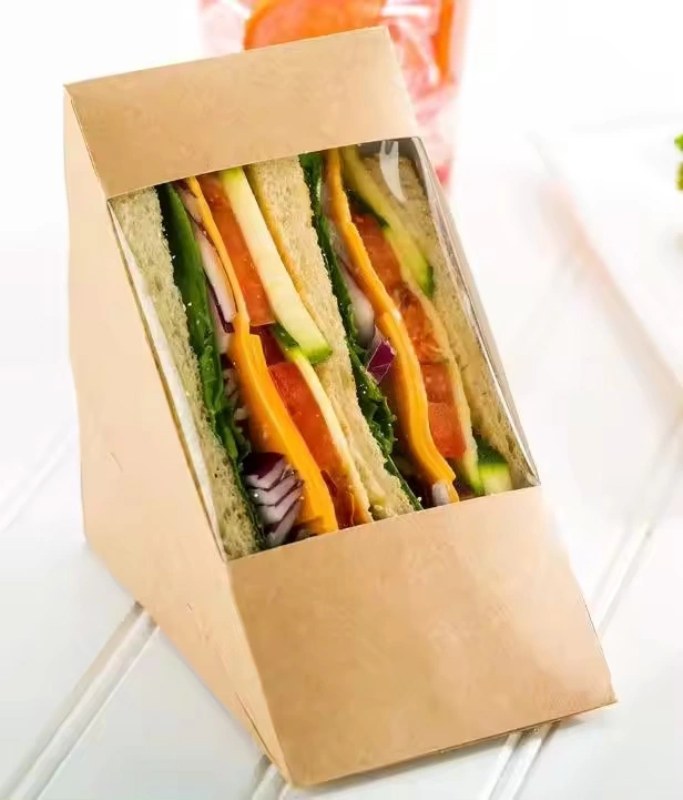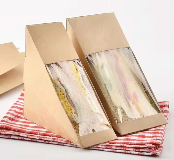 Custom Printing Disposable Kraft Triangle Vacuum Paper Sandwich Packaging Box
