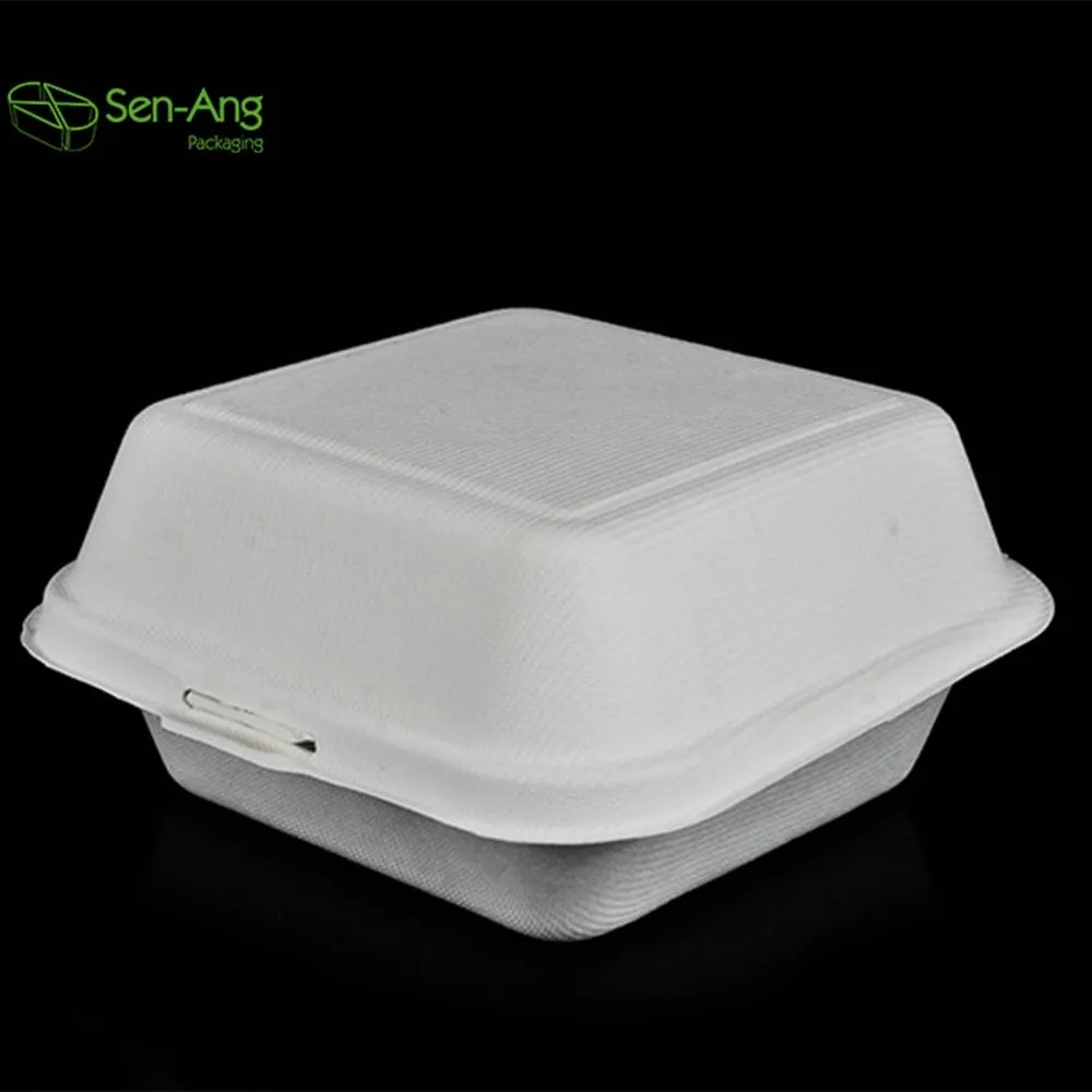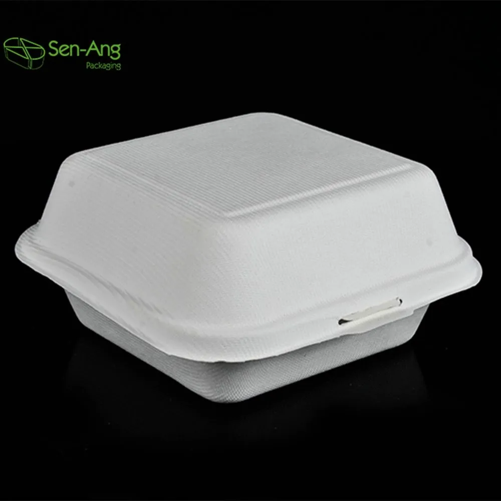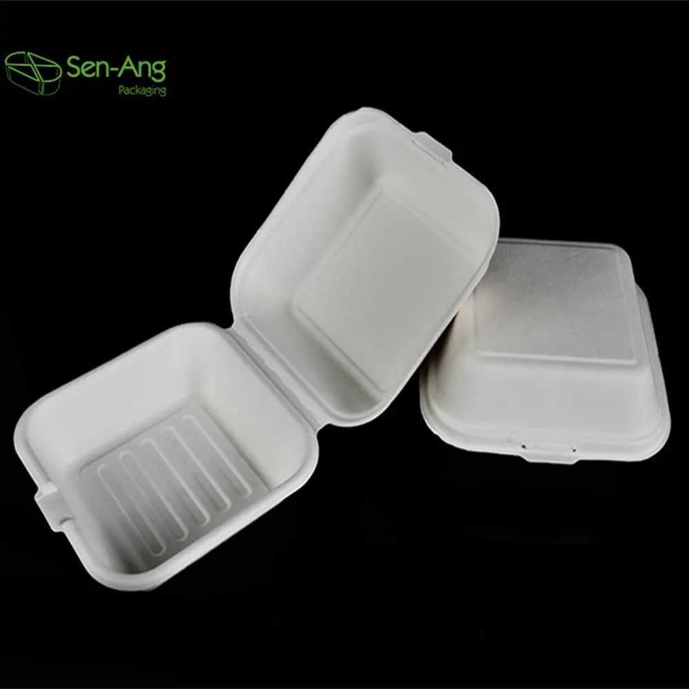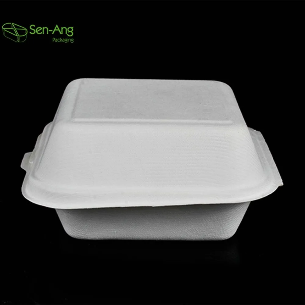 Disposable Biodegradable Paper Pulp Bagasse Clamshell Sugarcane Box