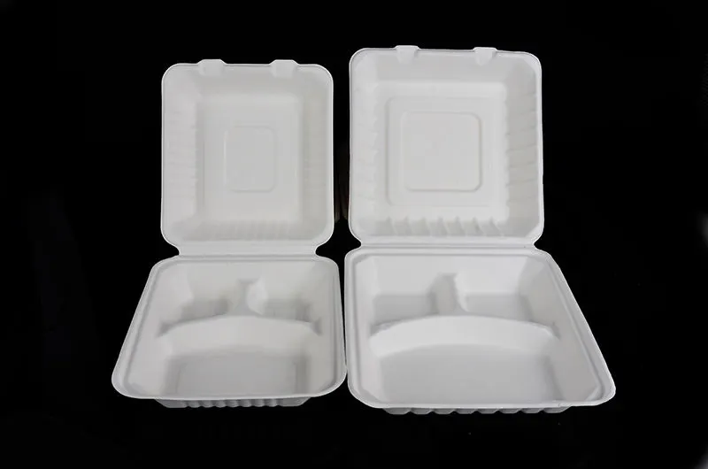 Senang is a professional sugarcane clamshell box manufacturer and supplier. Our sugarcane clamshell boxs are made of biodegradable and eco-friendly sugarcane pulp. The sugarcane clamshell box coating is made of PE, PP, PLA, Aqueous, has excellent leakage resistance. The sugarcane clamshell box is rcyclable, repulpable, biodegradable and compostable. After use, the environmental burden can be reduced through the correct recycling channels. Its material is tough and not easy to break, suitable for daily use by people in a fast-paced life.