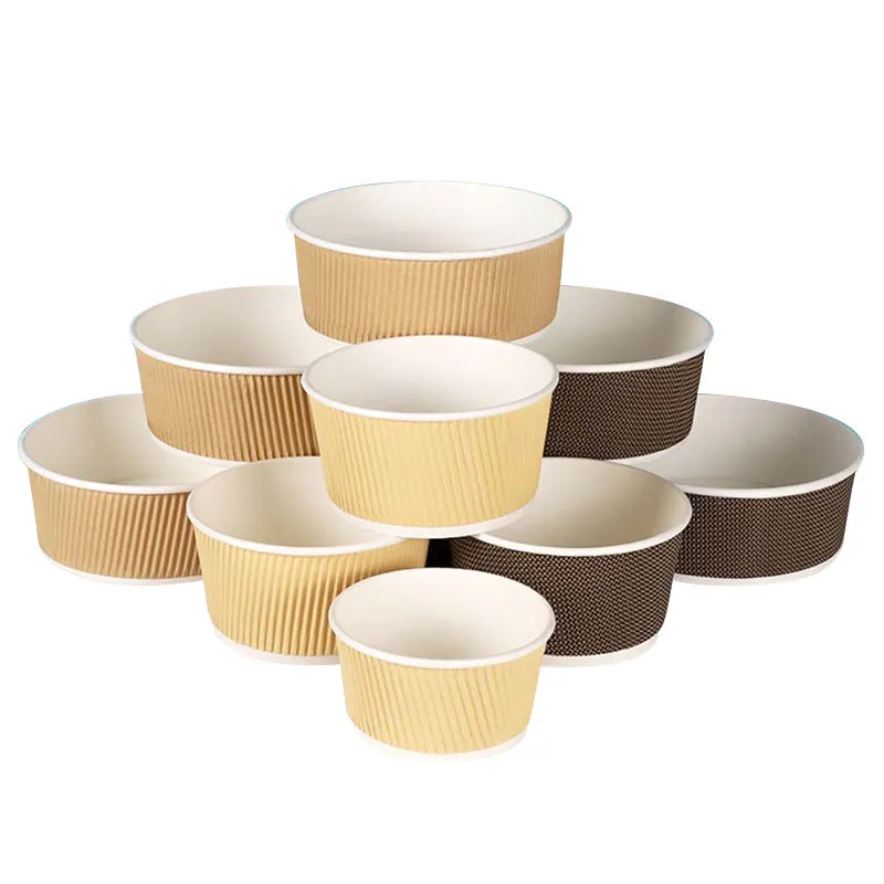 Disposable Corrugated Round Kraft Paper Soup Take Away Salad Bowl