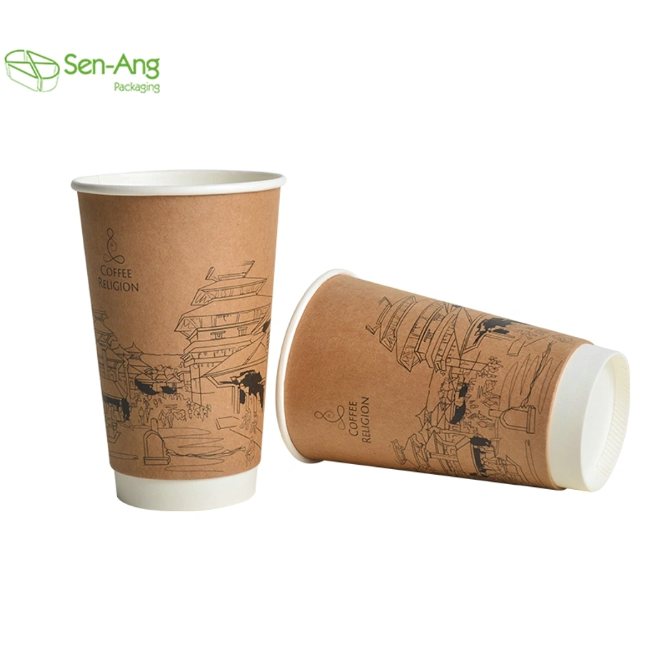 Disposable Customized Wall Kraft with Lid Double Layer Coffee Paper Cup
