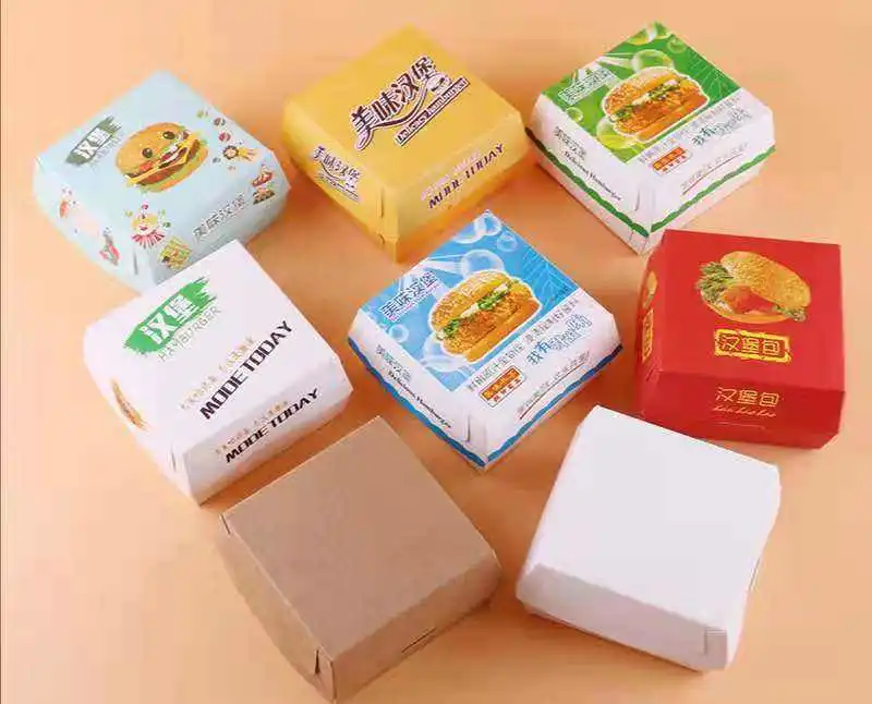 Disposable Food Grade Kraft Paper Chicken Burger Cardboard Hamburger Box