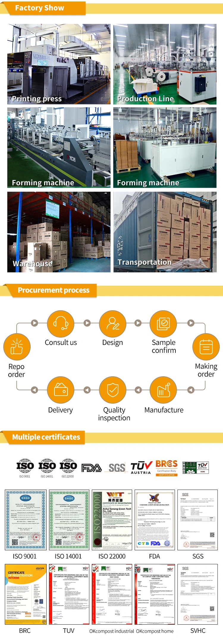SenAng is a professional paper tray manufacturer and supplier. Our paper trays are made of biodegradable and eco-friendly paper pulp. The paper tray coating is made of PE, PP, PLA, has excellent leakage resistance. The paper tray is recyclable, repulpable, biodegradable and compostable. After use, the environmental burden can be reduced through the correct recycling channels. Its material is tough and not easy to break, suitable for daily use by people in a fast-paced life.