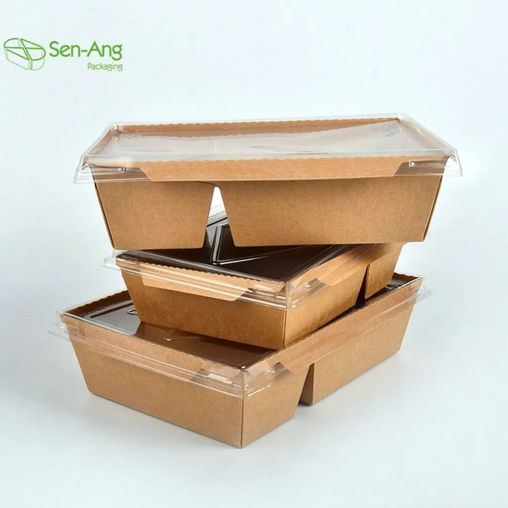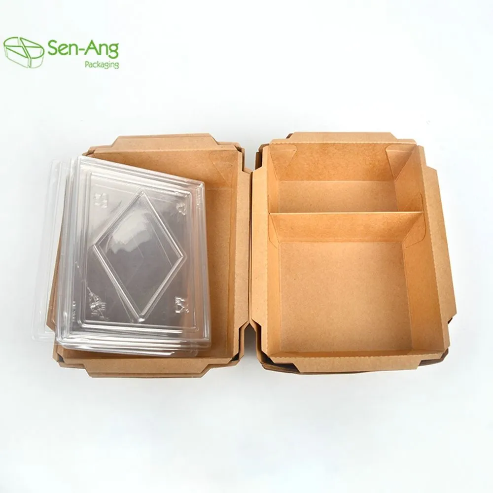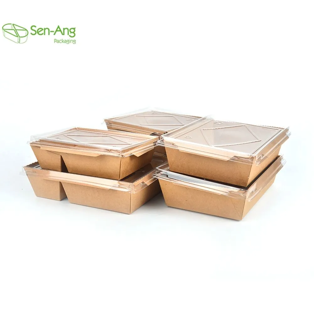 Senang has a large amount of disposable paper boxes, compostable paper box with clear lid, which are very suitable for food packaging. We can also custom print your logo to help you display your brand in front of many potential customers!