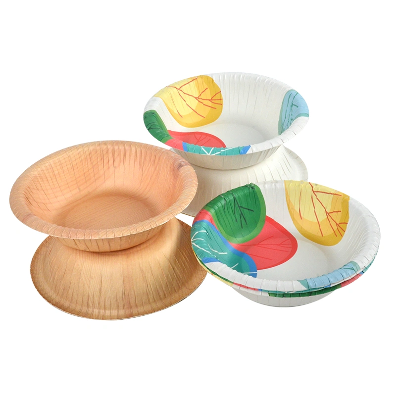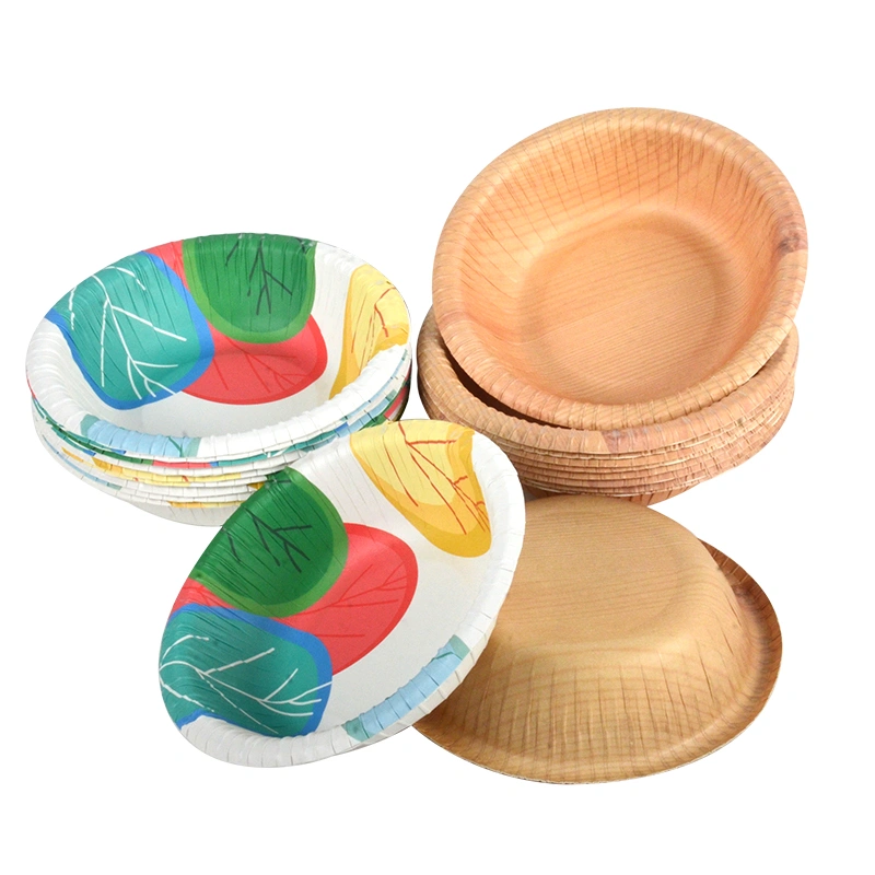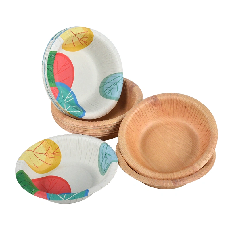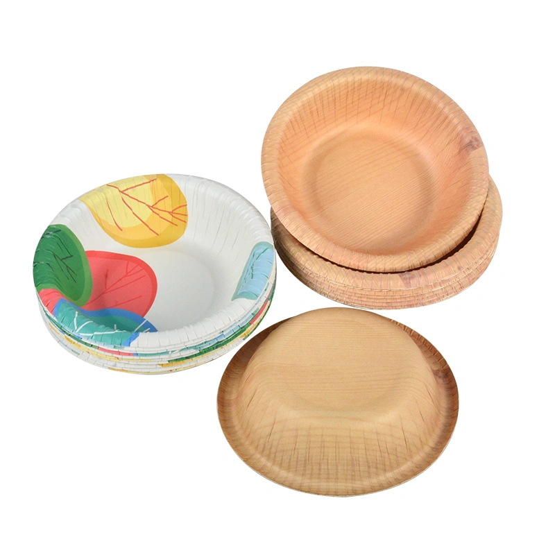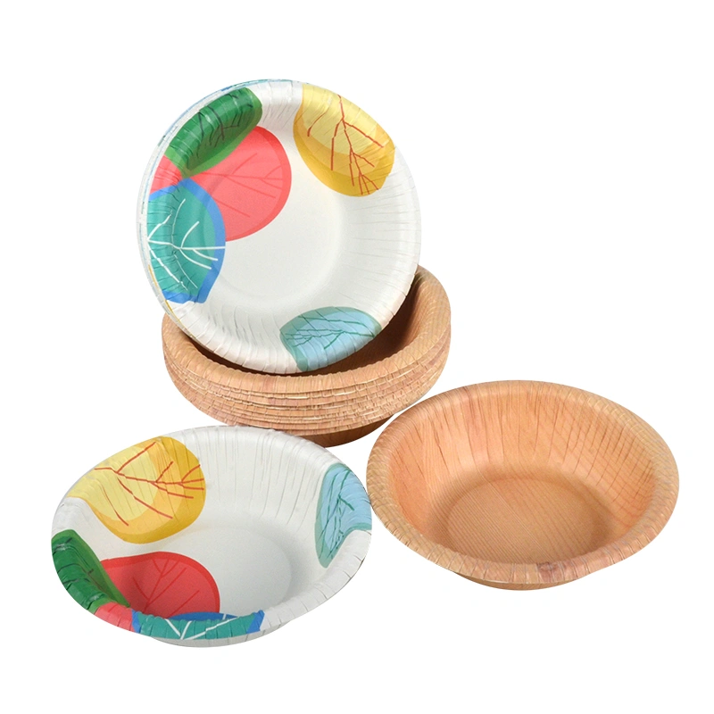 Disposable Wood Grain Pattern Design Eco Friendly Salad Paper Bowl