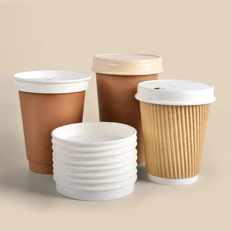 Eco Friendly Customized Take Away Disposable Kraft Paper Coffee Cup with Lid