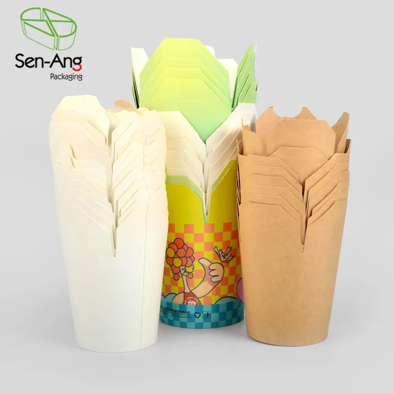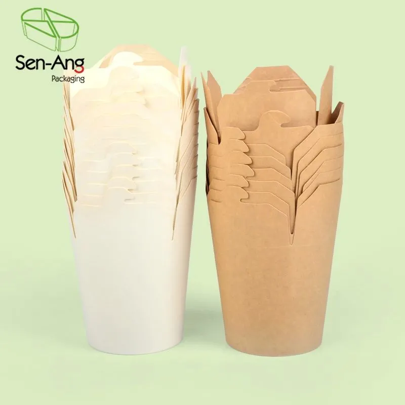 SenAng is a professional paper noodle box manufacturer and supplier. Our paper noodle boxes are made of biodegradable and eco-paper pulp. The paper box coating is made of PE, PP, PLA, has excellent leakage resistance. The paper box is rcyclable, repulpable, biodegradable and compostable. After use, the environmental burden can be reduced through the correct recycling channels. Its material is tough and not easy to break, suitable for daily use by people in a fast-paced life.