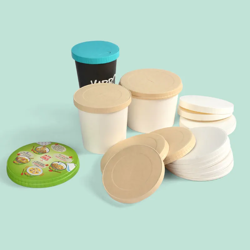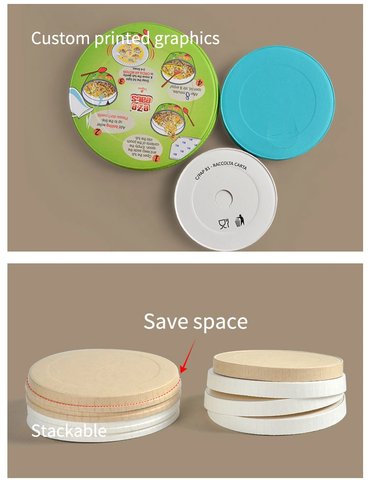 Senang supply a large amount of disposable paper lids, biodegradable paper lids, which are very suitable for food packaging. We can also custom print your logo to help you display your brand in front of many potential customers!