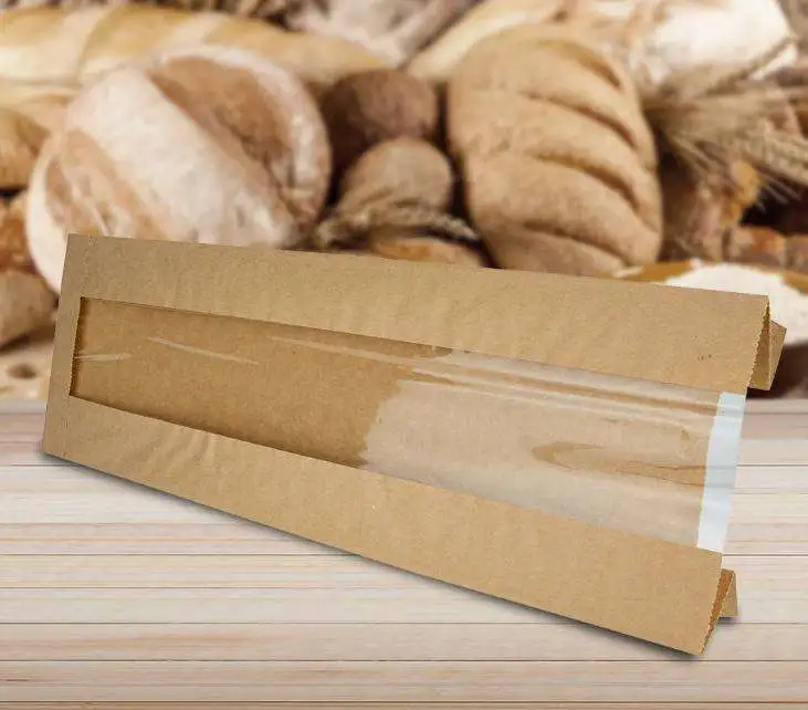 High Quality Kraft Paper Greaseproof Bread Bag with Clear Window