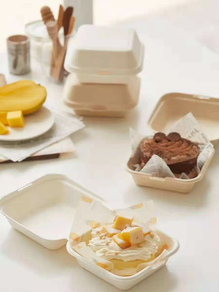Whether it is family gatherings, dining in the cafeteria or takeaway, etc., our sugarcane clamshell boxes provide a convenient packaging solution. Senang has sugarcane clamshell box of various materials and sizes to choose from. We also provide customized printing services, which is an excellent carrier for your brand promotion.