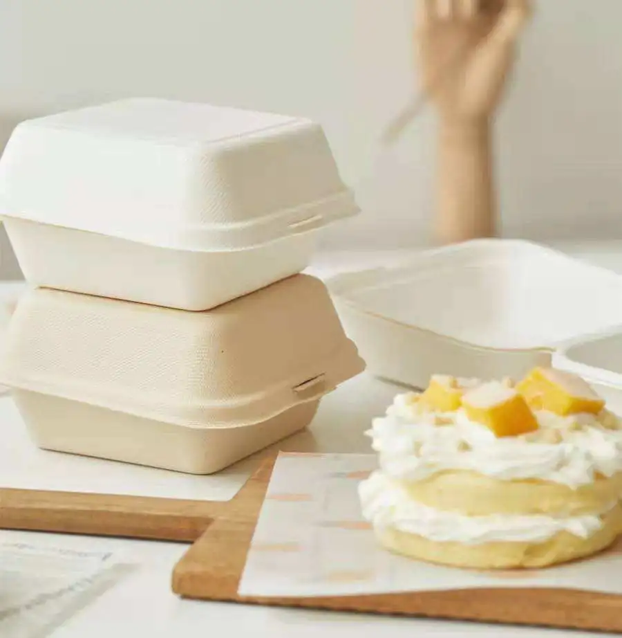 Senang is a professional sugarcane clamshell box manufacturer and supplier. Our sugarcane clamshell boxes are made of biodegradable and eco-friendly sugarcane pulp. The sugarcane clamshell box coating is made of PE, PP, PLA, Aqueous, has excellent leakage resistance. The sugarcane clamshell box is rcyclable, repulpable, biodegradable and compostable. After use, the environmental burden can be reduced through the correct recycling channels. Its material is tough and not easy to break, suitable for daily use by people in a fast-paced life.
