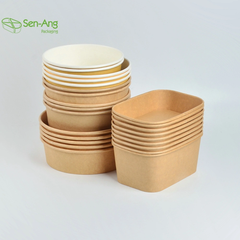 SenAng supply a large amount of disposable kraft paper bowls, biodegradable paper bowls, paper bowls with lids, which are very suitable for food packaging. We can custom print your logo or design to help you display your brand in front of many potential customers!