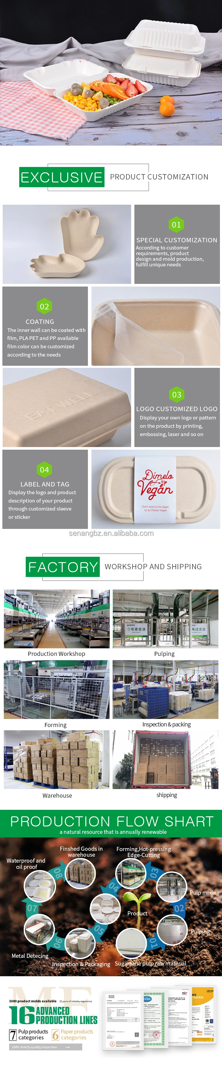 Senang is a professional sugarcane food container manufacturer and supplier. Our sugarcane food containers are made of biodegradable and eco-friendly sugarcane pulp. The sugarcane food container coating is made of PE, PP, PLA, Aqueous, has excellent leakage resistance. The sugarcane food container is rcyclable, repulpable, biodegradable and compostable. After use, the environmental burden can be reduced through the correct recycling channels. Its material is tough and not easy to break, suitable for daily use by people in a fast-paced life.