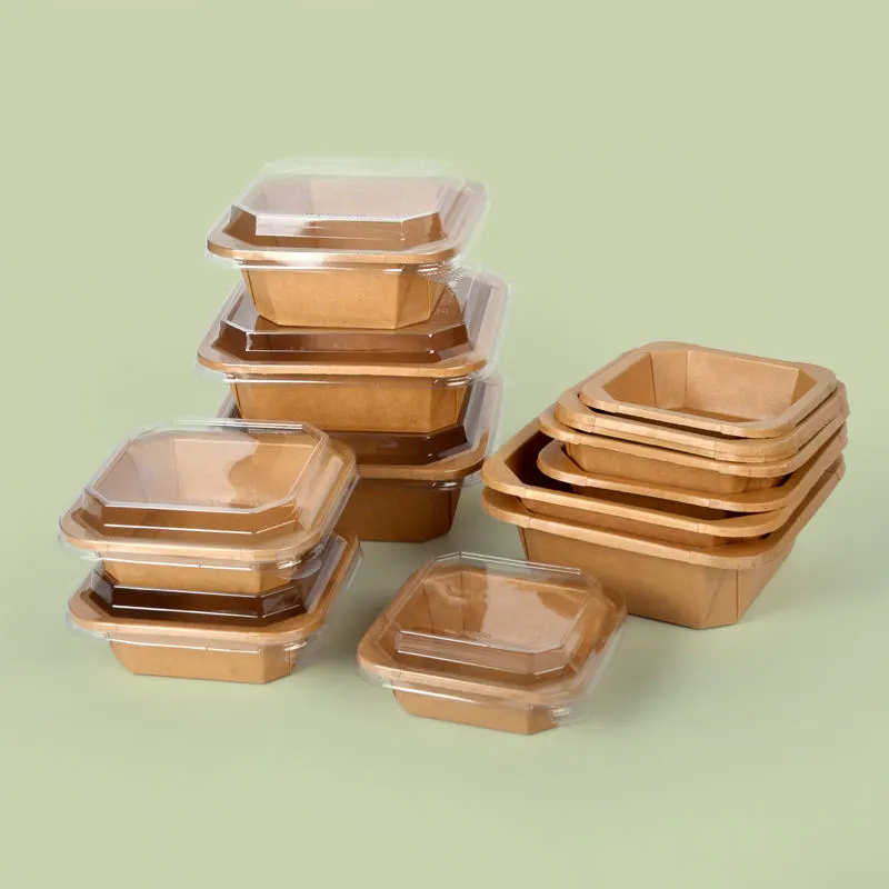 New Design Disposable Square Bottom Kraft Paper Bowl