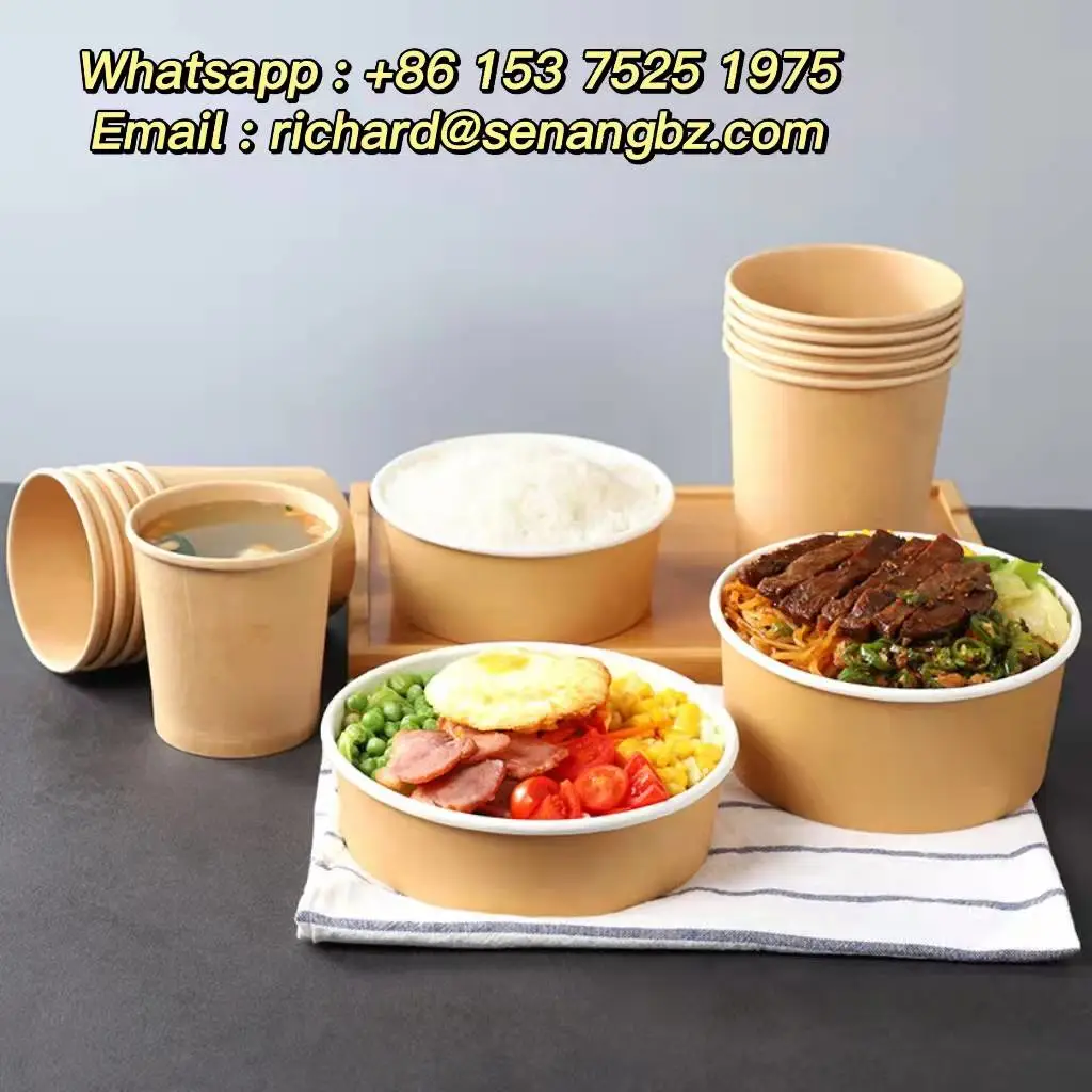 SenAng supply a large amount of disposable kraft paper bowls, biodegradable paper bowls, paper bowls with lids, which are very suitable for food packaging. We can also custom print your logo to help you display your brand in front of many potential customers!  Get Free Samples↓↓↓↓