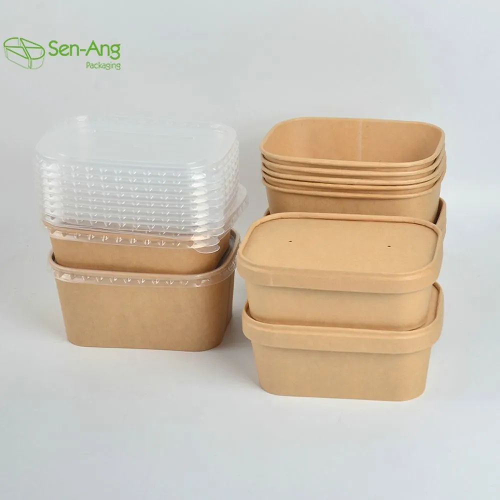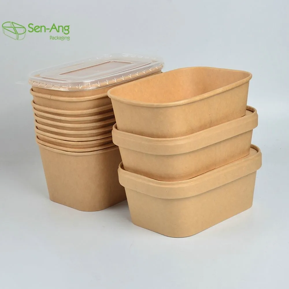 Rectangle Takeaway White And Brown Microwavable Salad Paper Box with Lid