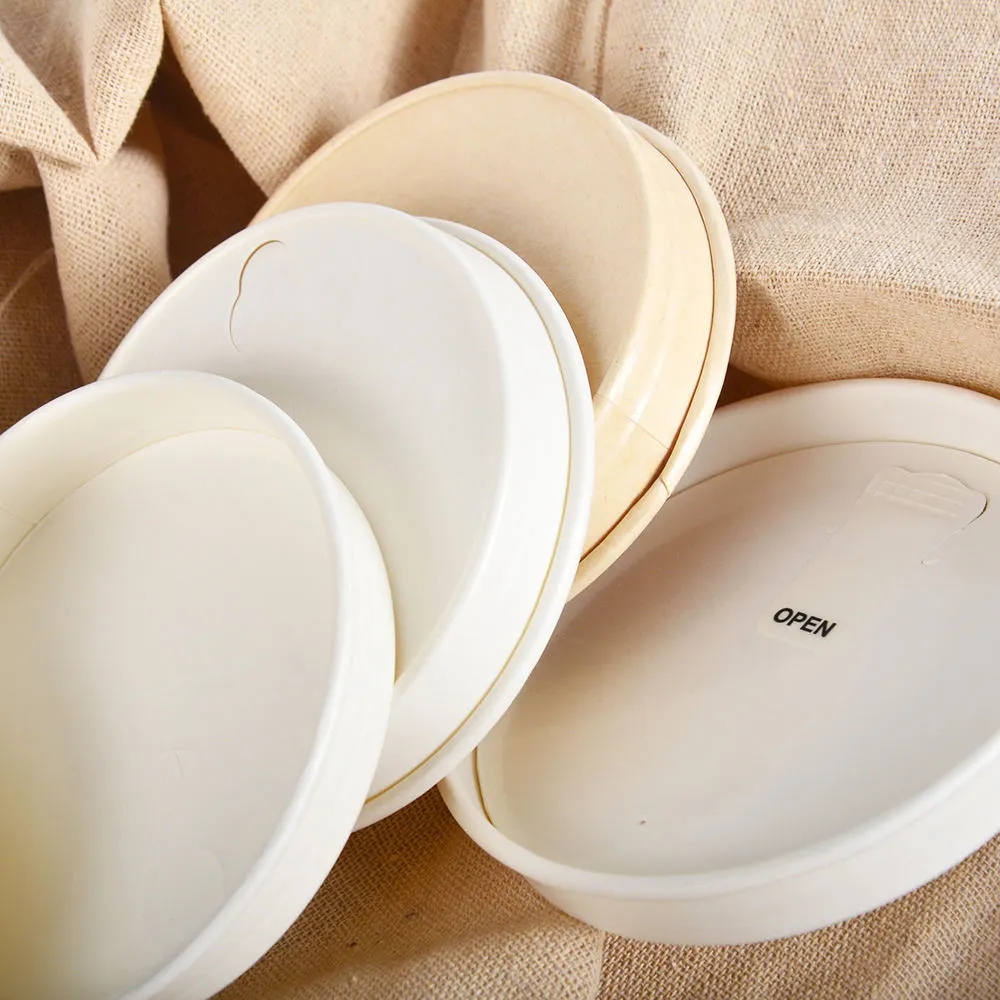 Senang supply a large amount of disposable paper lids, biodegradable paper lids, which are very suitable for food packaging. We can also custom print your logo to help you display your brand in front of many potential customers!